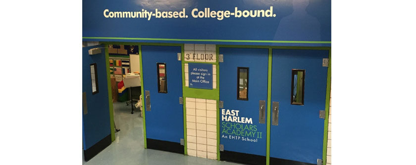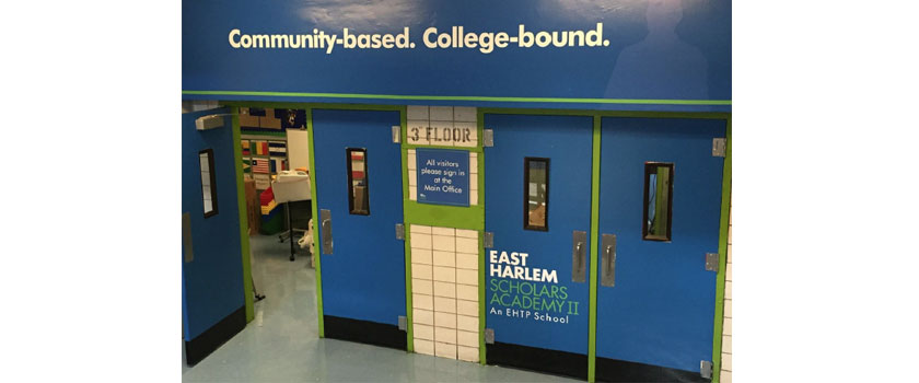 East Harlem Scholars Academy adds a door wrap to modernize the campus with a colorful decal.