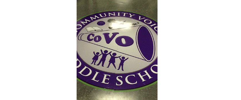 BGE adds a bright floor decal in Community Voice Middle School (aka CoVo) which easily welcomes all students and faculty.
