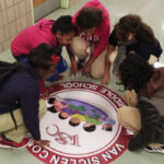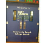 Installation of sign being added to the main entrance at Roberto Clemente Campus creating an identity for three schools.