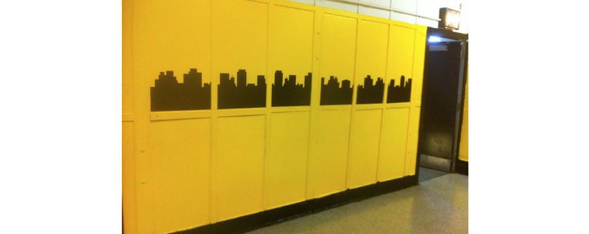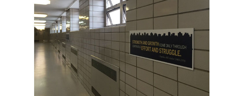 BGE adds an unmistakable sign to the end of a long hallway at City Polytechnic High School.